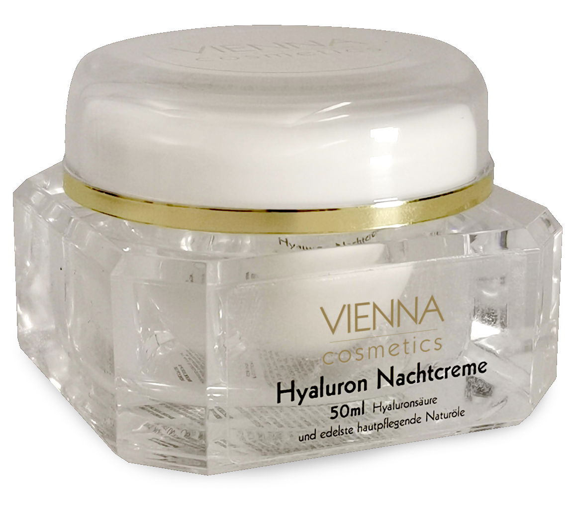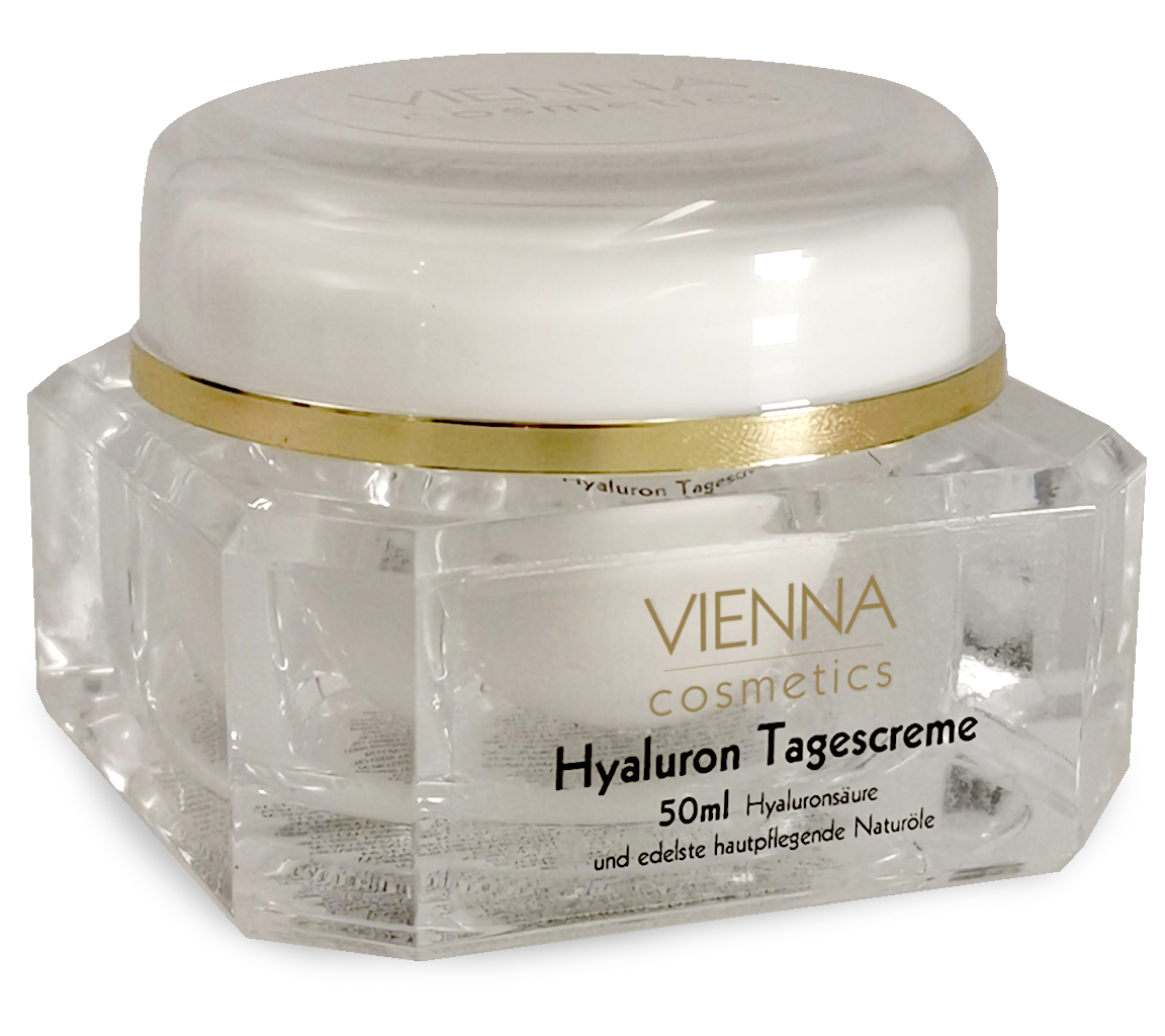 Hyaluronsäure kommt von Natur aus in der Haut und in den verschiedensten Bereichen unseres Körpers vor. Hyaluron wird auch vom menschlichen Körper selbst produziert und zeichnet sich besonders durch die 1000-fache Speicherung an Wasser in Bezug auf ihr Eigengewicht aus. Hyaluron kann somit für eine optimale Feuchtigkeitsversorgung und Festigkeit der Haut sorgen. Mit zunehmendem Alter sinkt die körpereigene Hyaluronsäureproduktion kontinuierlich. Die Haut verliert an Dichte, Spannkraft und Geschmeidigkeit. Es bilden sich Falten. Auch ungünstige äussere Einflüsse wie zum Beispiel: starke Sonneneinstrahlung, Belastungen durch die Umwelt und Staub können die Ermüdungserscheinungen der Haut begünstigen und den Alterungsprozess beschleunigen. Die Hyaluronsäure von VIENNA- cosmetics wirkt diesen Einflüssen entgegen und hilft auf natürlichem Weg zu einer glatten, geschmeidigen Haut und einem jugendlich strahlendem Teint.