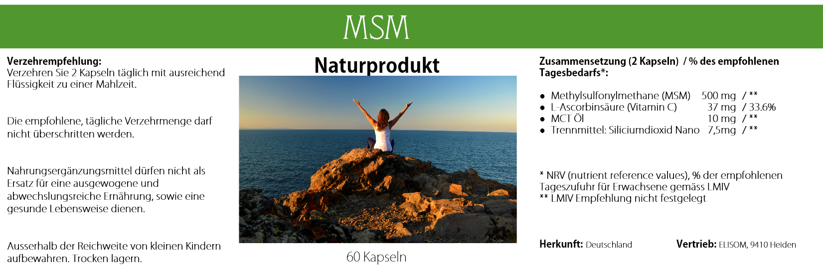 • Methylsulfonylmethane (MSM) 500 mg / **