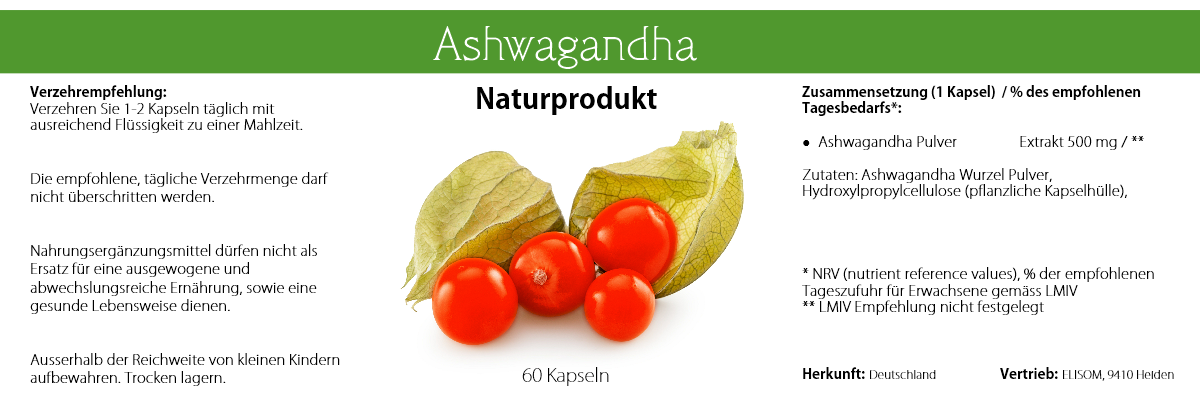 - Ashwagandha Wurzelpulver 500mg