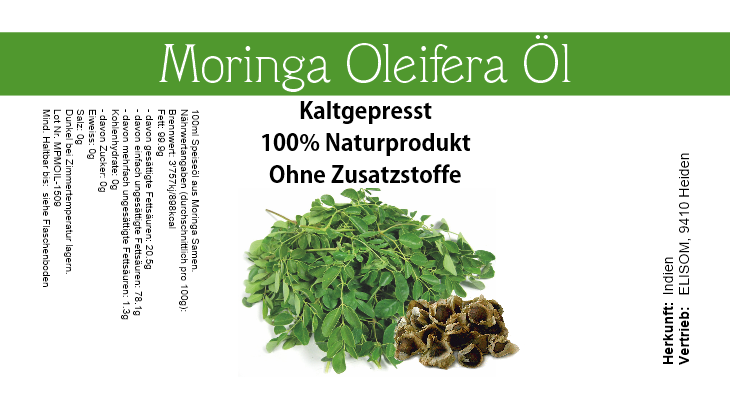 Moringa Öl ist eines der wertvollsten Speiseöle, es kann sehr lange im Kühlen oder bei Zimmertemperatur gelagert werden, und wird auch nicht ranzig.